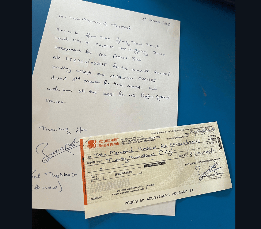 For the fifth time, The Giving Tree community came together to support Mr. Amod Jha in his ongoing battle against cancer. Mr. Jha continues to undergo treatment at Tata Memorial Hospital, and as part of our February campaign, we aimed to raise ₹20,000 to assist with his chemotherapy and medical expenses.