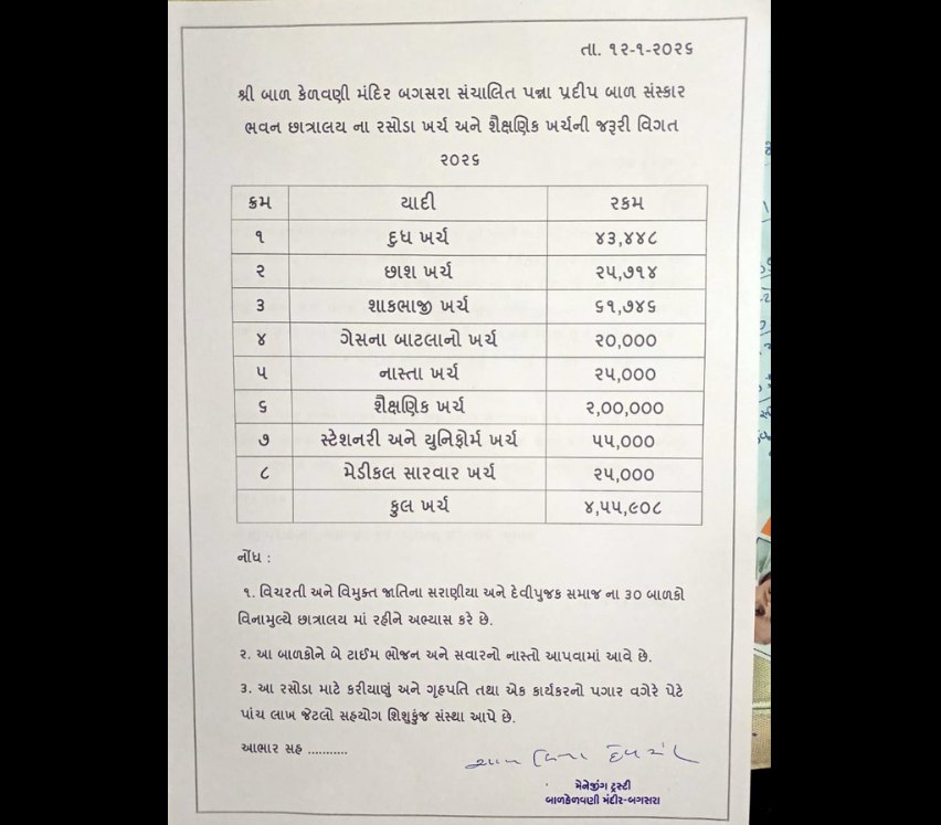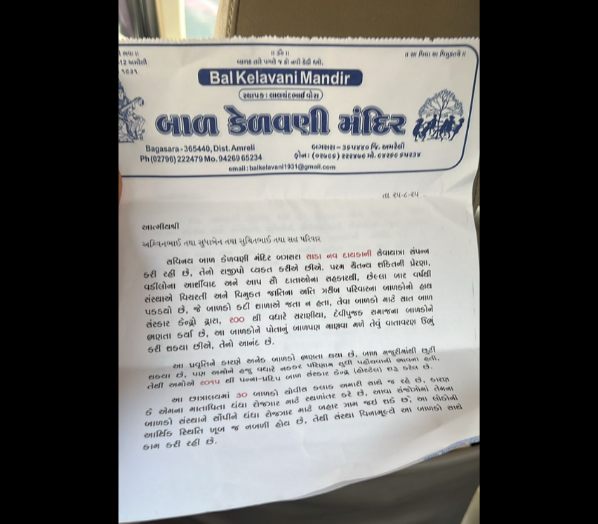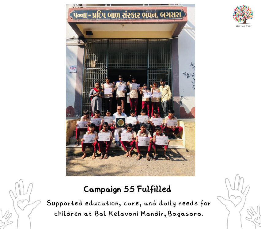 Giving Tree NGO finished January 2026 with a cause deeply rooted in compassion, responsibility and hope. This month, our focus was on supporting the children of Bal Kelavani Mandir, Bagasara (Gujarat)—a residential institution that provides shelter, education, and care to underprivileged children.
