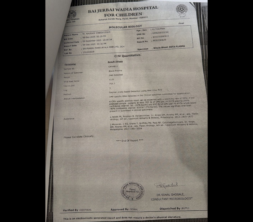 In the month of February, Giving Tree, in association with Alliance Insurance Brokers Pvt. Ltd., came together to support Mr. Kaushik Dinesh Joshi (41) from Nalasopara, who is currently battling blood cancer and undergoing chemotherapy along with supportive treatment at Tata Memorial Hospital, Mumbai.